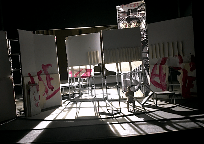 Beängstigend hohe Metallgerüste, vollbehangen mit Politbildern und -parolen, Manifesten und Graffitis aus allen Epochen und Zeiten, Mahnbilder eines sich stets wiederholenden, nie vergehenden zerstörerischen Wahnsinns. (IOCO/Kultur im Netz)